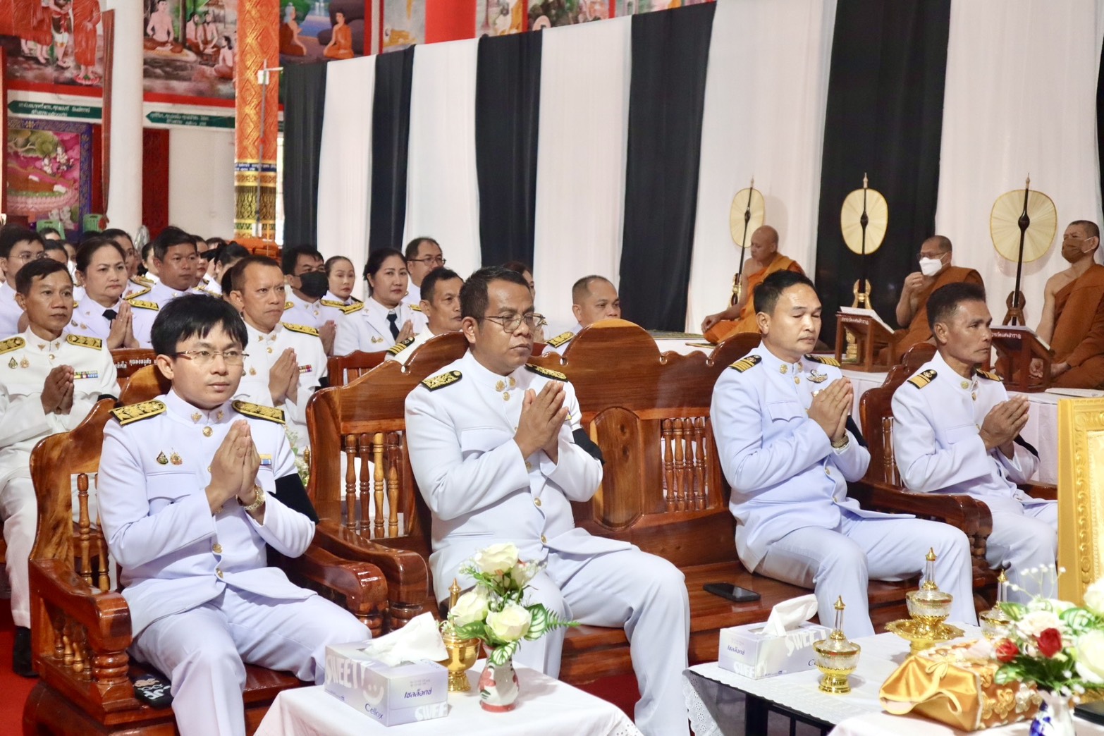 นายกองค์การบริหารส่วนตำบลหนองกินเพล คณะผู้บริหาร เข้าร่วมพิธีบำเพ็ญกุศล สวดพระอภิธรรม อุทิศถวายพระราชกุศลแด่สมเด็จพระนางเจ้าสิริกิติ์ พระบรมราชินีนาถ พระบรมราชชนนีพันปีหลวง
