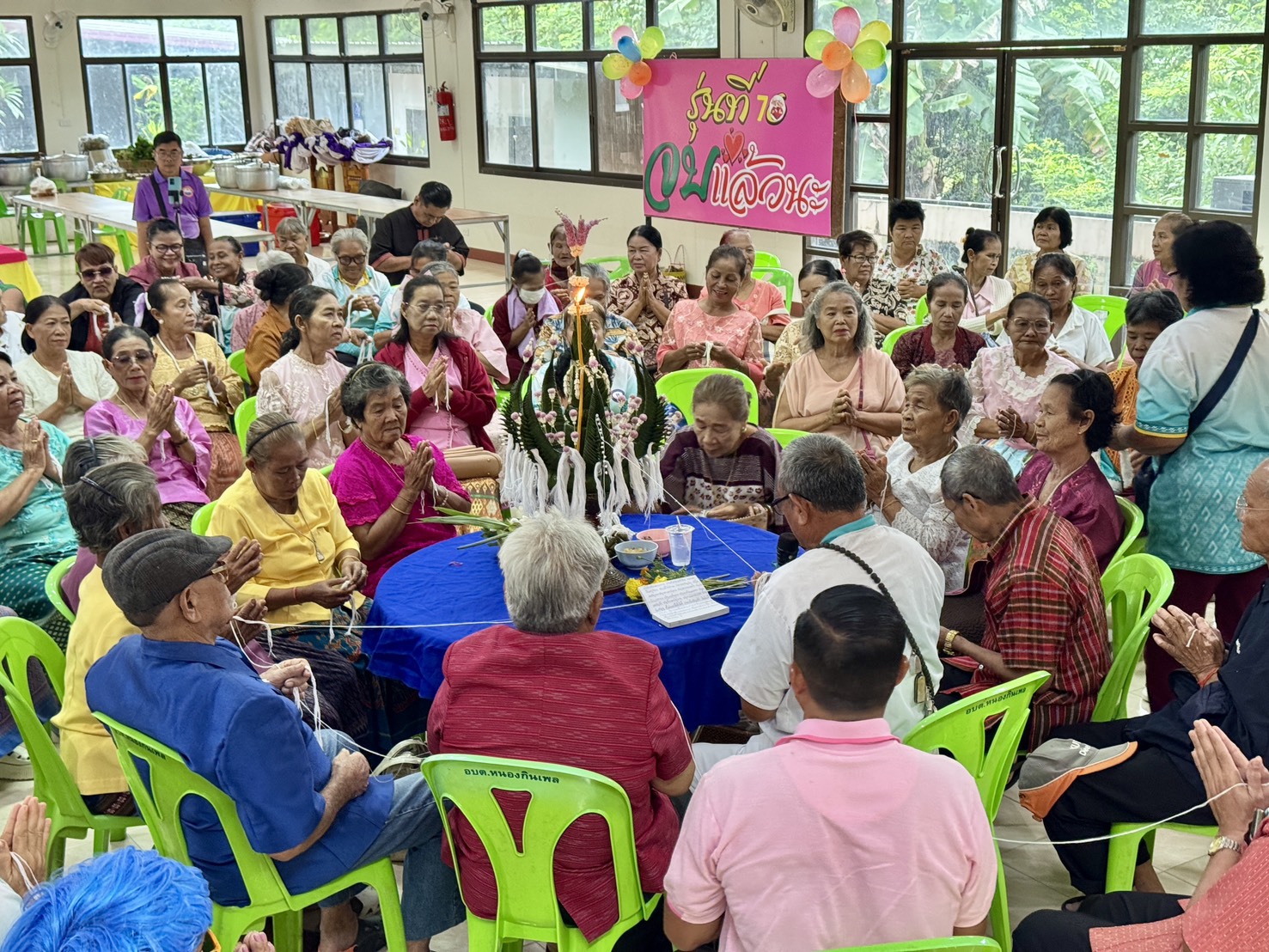วันอังคาร, 30 กันยายน 2568 09:52" สัปดาห์ที่ 14: ปัจฉิมนิเทศและพิธีบายศรีสู่ขวัญนักเรียนผู้สูงอายุ เพื่อเป็นการแสดงความเคารพ เชิดชูเกียรติ และแสดงความปรารถนาดีต่อผู้สูงอายุที่เข้าร่วมการเรียนรู้ตลอดหลักสูตร ทางโครงการจึงได้จัดกิจกรรมปัจฉิมนิเทศและพิธีบายศรีสู่ขวัญขึ้น เพื่อความเป็นสิริมงคลและเสริมสร้างขวัญกำลังใจให้กับผู้สูงอายุทุกท่าน กิจกรรมดังกล่าวมุ่งหวังให้ผู้สูงอายุมีความสุขในการดำรงชีวิตในช่วงบั้นปลาย ด้วยสุขภาพร่างกายที่แข็งแรง สุขภาพจิตที่แจ่มใส มีพลังใจที่เข้มแข็ง พร้อมทั้งสามารถดำรงชีวิตอยู่ในสังคมได้อย่างมีความหมาย ภายใต้บรรยากาศของความเอื้อเฟื้อเผื่อแผ่ ความสามัคคี ความเมตตาต่อกัน และการอยู่ร่วมกันอย่างกลมเกลียวเป็นน้ำหนึ่งใจเดียวกัน "