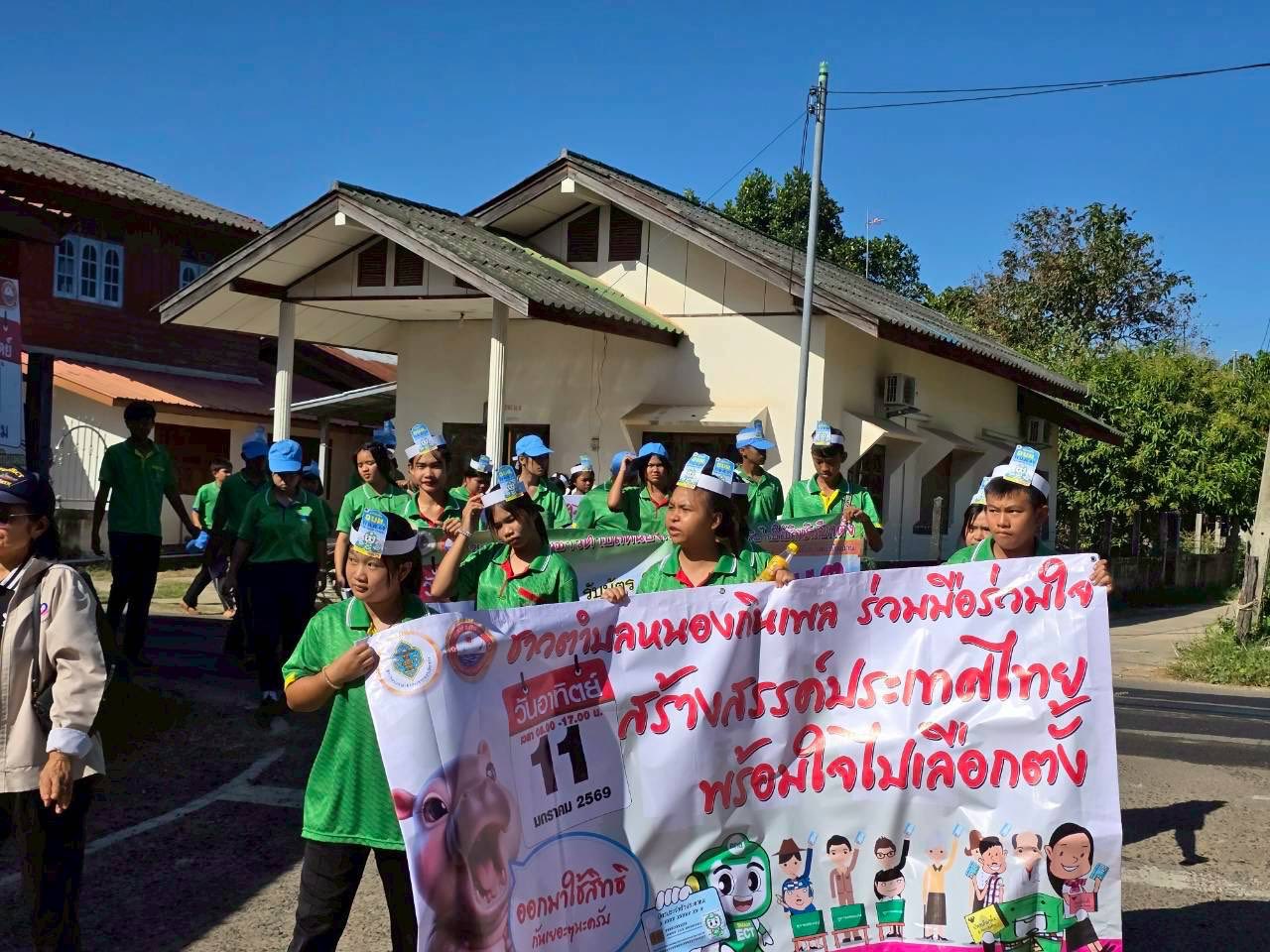 กิจกรรมเดินรณรงค์ประชาสัมพันธ์เชิญชวนไปใช้สิทธิเลือกตั้งสมาชิกสภาองค์การบริหารส่วนตำบลหนองกินเพล และนายกองค์การบริหารส่วนตำบลหนองกินเพล